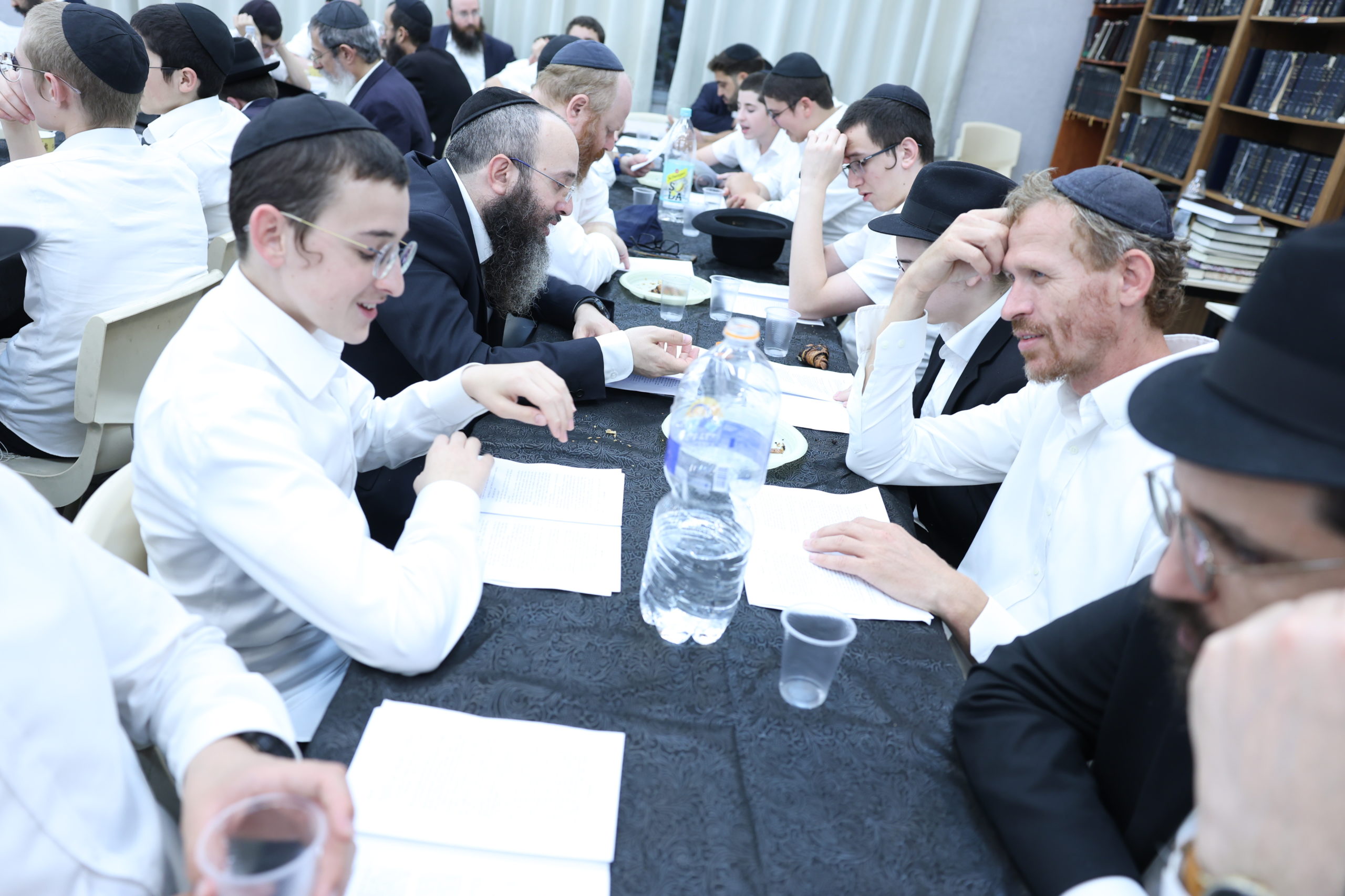 לאחר סדר הלימוד ותפילת ערבית, התיישבו ההורים והתמימים להתוועד עם צוות הישיבה רמי"ם משפיעים ומשגיחים, בראשות ראש הישיבה הגאון רבי אברהם אשר בלינוב שליט"א.